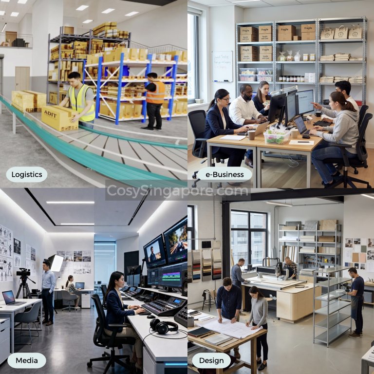 B1 industrial zoning in Singapore permits a wide range of clean industries — businesses that do not generate pollutants, excessive noise, hazardous waste, or nuisance impacts on neighbouring premises. This makes B1 units highly practical for tech-enabled, knowledge-intensive, and light-manufacturing businesses that need professional-grade space without the constraints of an office building.